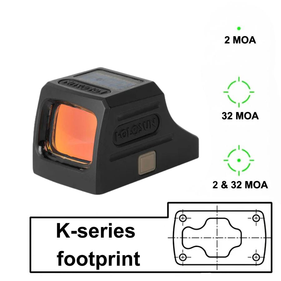 Ten kolimator wykorzystuje standard footprint Holosun K-Series.