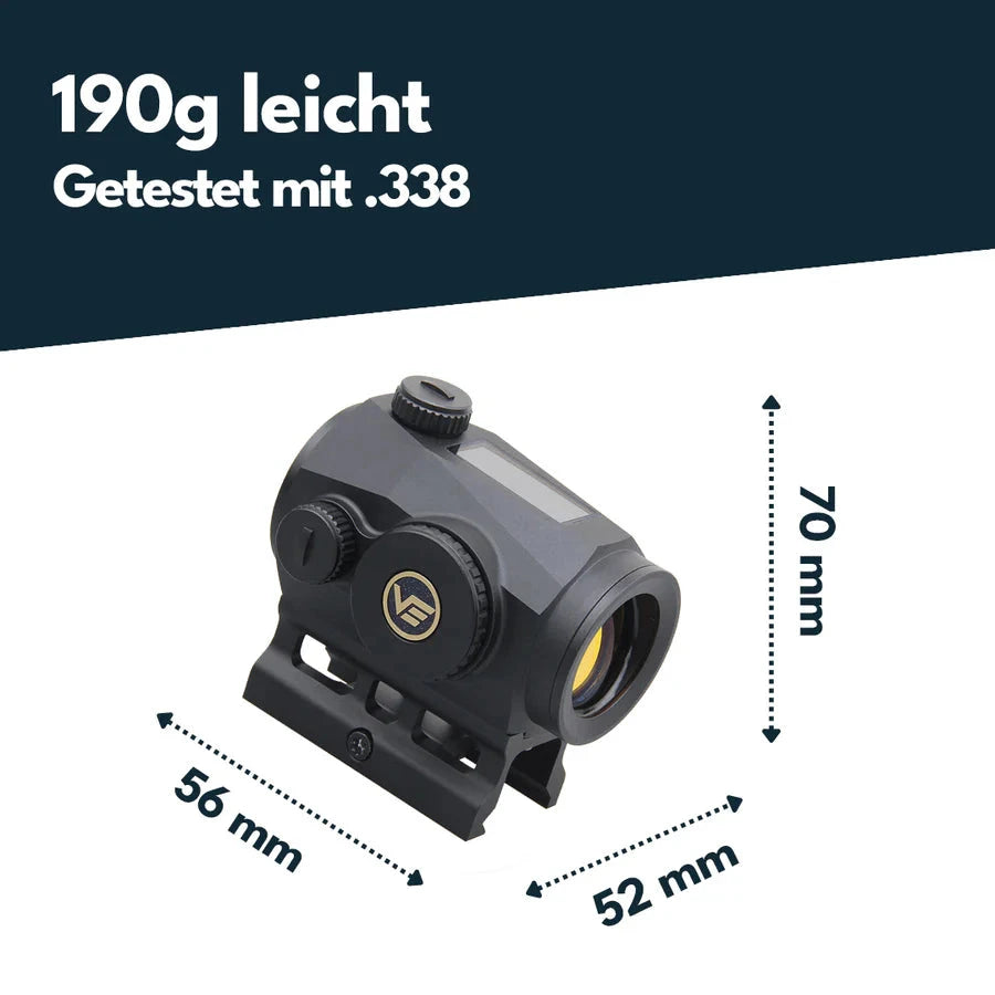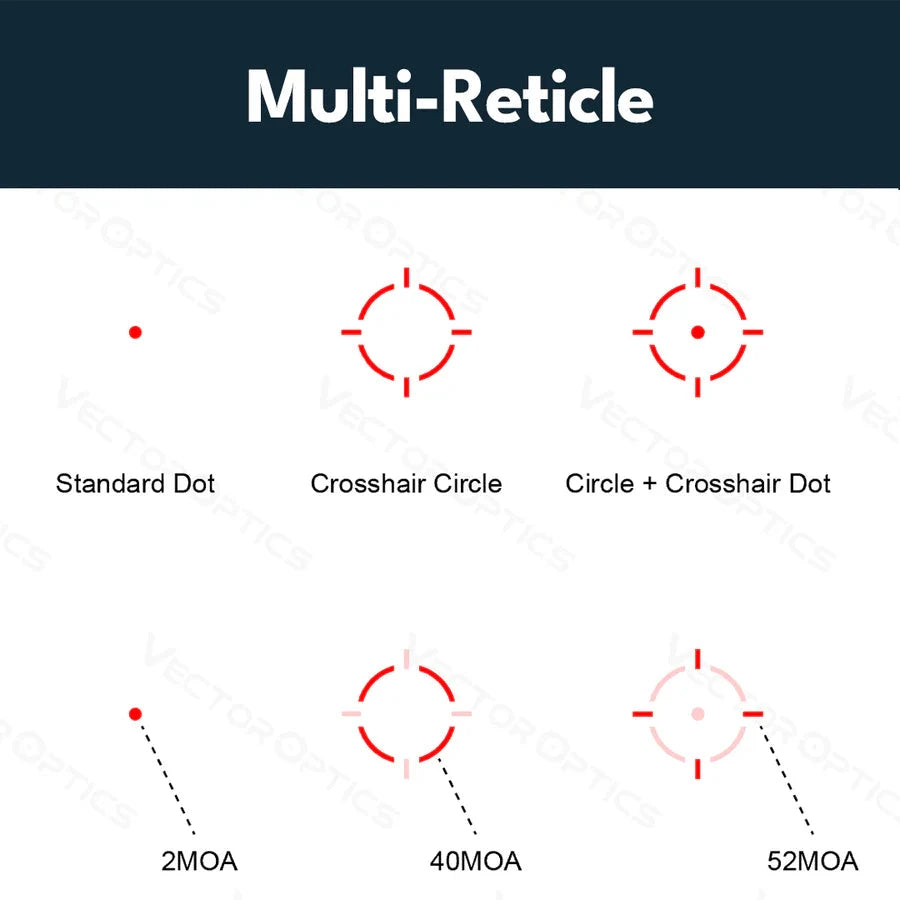 Oferuje także trzy wybieralne siatki celownicze, czujnik ruchu (automatyczne wyłączenie po 2 minutach bezczynności i ponowne włączenie natychmiast po poruszeniu optyki) oraz łącznie dziesięć poziomów jasności (w tym 2 poziomy do noktowizji).